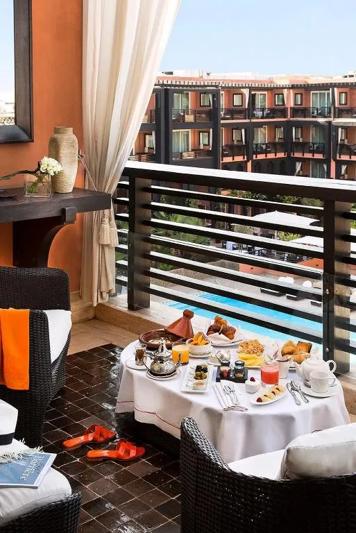 Wenn Sie Ihren Urlaub in einem renommierten Hotel planen, sollten Sie eine Unterkunft im Palm Plaza Hotel & Spa in Betracht ziehen. Es ist ein ideales Hotel, um eine entspannende und angenehme Zeit entweder mit der Familie oder als Paar zu verbringen. Das Palm Plaza Hotel & Spa ist ein idyllisches Hotel in Marrakesch, das nur 5,9 km vom Flughafen entfernt liegt. Es ist ein Hotel, das seinen Gästen einen Shuttleservice anbietet. Das Palm Plaza Hôtel & Spa ist eines der besten Hotels mit Pool . Es befindet sich nur zwei Gehminuten vom Einkaufszentrum Almazar entfernt. Die Zimmer dieses Hotels sind paradiesisch dekoriert und erinnern an den Palais d'Élysée. Die Zimmer verfügen über kostenloses WLAN und Flachbildfernseher. Im Spa werden Ihnen Massagen, Maniküre und Pediküre angeboten. Unter den 4 Restaurants des Palm Plaza Hotel & Spa gibt es eines, das Spezialitäten der marokkanischen Küche anbietet. Darüber hinaus gibt es in dieser Luxusunterkunft einen Außen Pool und auch eine Bar in der Nähe. Das Palm Plaza Hotel & Spa wurde mit dem Ziel gebaut, seinen Gästen eine angenehme Zeit zu bereiten. Sie können hier Ihren Urlaub verbringen oder geschäftlich unterwegs sein.