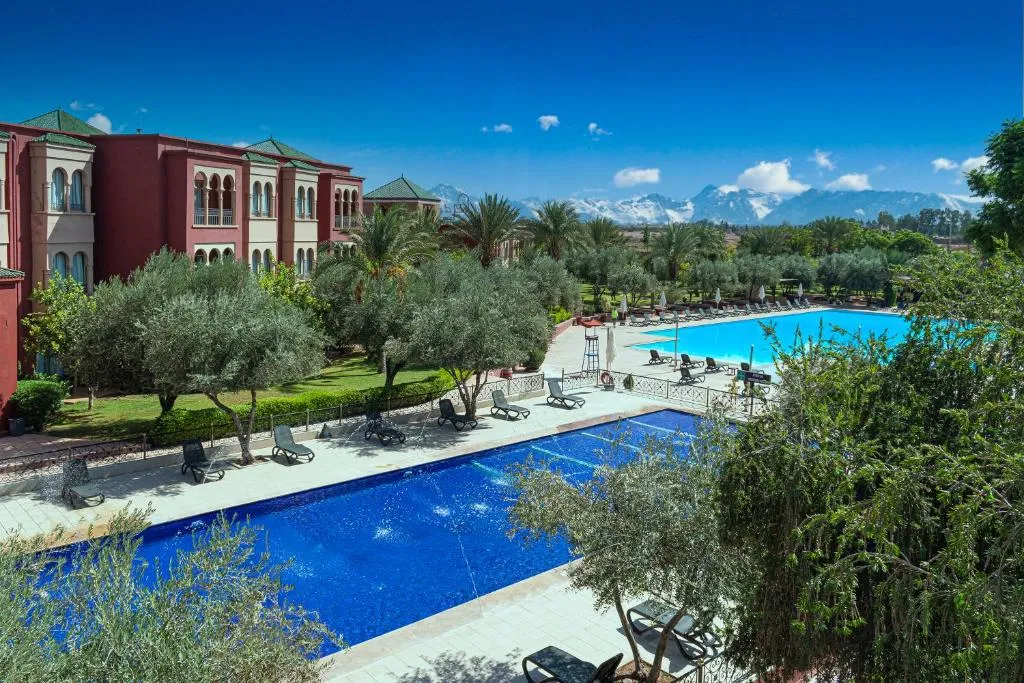 Der Traum eines jeden Touristen ist es, sich in einer luxuriösen Umgebung in der Nähe schöner Sehenswürdigkeiten zu entspannen. Bei einem Aufenthalt in Marokko bietet das Barcelo Palmeraie seinen Gästen eine Fünf-Sterne-Anlage, in der sie unterkommen und die rote Stadt erkunden können. Das Barcelo Palmeraie ist ein schickes, majestätisches Resort, dessen Infrastruktur von den lokalen Bräuchen und der Kultur inspiriert ist. Es befindet sich im Herzen des berühmten Palmenhains von Marrakesch. Genauer gesagt ist es nur fünf Minuten vom Golfplatz und elf Kilometer vom Flughafen Marrakesch-Menara entfernt. Diese gehobene Unterkunft zählt zu den besten Hotels mit Pool in Marrakesch. Es verfügt über 252 Zimmer, darunter 16 Suiten. Sie bieten jeglichen Luxus und Komfort, der für eine Erholungsreise in einem tropischen Klima geeignet ist. Jedes Zimmer verfügt über ein eigenes Bad, einen Balkon, eine Minibar und einen Flachbild-Satellitenfernseher. Eine Wi-Fi-Verbindung ist kostenlos verfügbar. Das Hotel verfügt über ein Dutzend Tagungsräume. Dies macht es zum idealen Ort, um kleine oder große Konferenzen abzuhalten. Auch festliche Veranstaltungen im Freien können hier erfolgreich organisiert werden. Gönnen Sie Ihrer Familie Tage am Pool unter dem Segen eines azurblauen Himmels. Das Hotel bietet seinen Gästen eine breite Palette an gastronomischen Dienstleistungen. In einer Umgebung, die nach dem geselligen, typisch marokkanischen Stil eingerichtet ist, genießen Sie ein exotisches kulinarisches Angebot. Ein Außen Pool und ein Spa-Bereich sollen die Entspannung der Gäste optimieren.
