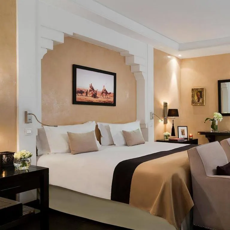 El Hotel & Ryad Barrière Le Naoura está situado en el centro de Marrakech. Es un lugar tranquilo en el corazón de la ciudad con un jardín y una terraza soleada. Todas las habitaciones son lujosas, amplias y cuentan con varias comodidades modernas. Están bien organizados y equipados con Wi-Fi gratuito, TV de pantalla plana, aire acondicionado y calefacción. El hotel es uno de los que dispone de gimnasio, sala de vapor, spa, bañera de hidromasaje y jacuzzi. Es todo lo que se puede desear en un centro de fitness. El gimnasio tiene todos los mejores accesorios y máquinas modernas. Tienes el banco de pesas, la bicicleta estática, la cinta de correr y la máquina de remo. Además, la alfombra del suelo también está a su alcance. Para un viaje en familia, hay diferentes tipos de actividades para sus hijos. Hay un parque infantil y un club de juegos de mesa. Además, se ofrece un servicio de canguro si quiere disponer de más tiempo. Se admiten animales de compañía en el hotel. Situado cerca del aeropuerto, hay varios lugares de interés justo al lado. Podrá disfrutar del Parque Cibernético, el Jardín Secreto, el Zoco de la Medina, el Real Club de Tenis de Marrakech, etc.