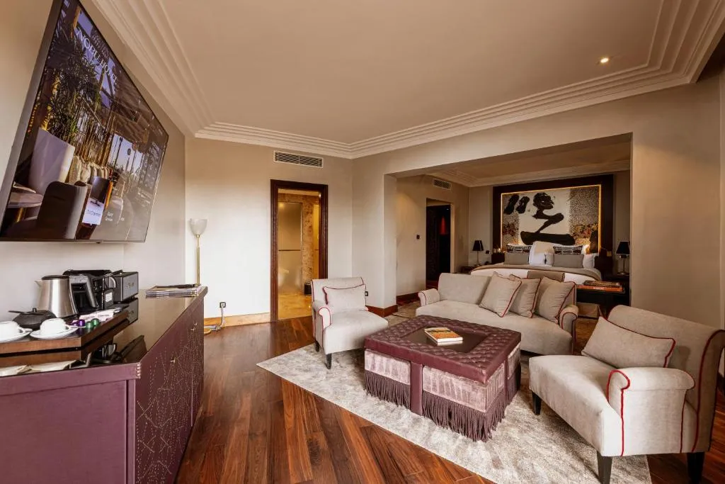 Sofitel Marrakech Palais Imperial is a 15-minute walk from Jamaâ El Fna Square. The establishment has an outdoor pool. It is a beautiful hotel that looks like a Moorish palace. Around the place, you will find gardens decorated with plants and several exotic flowers. Thanks to their traditional architecture and ochre-colored walls, the rooms of the place have an irresistible charm. There are about 30 rooms, each with comfortable bedding. You will also enjoy air conditioning and a bathroom with L'Occitane products. The hotel offers lush gardens and palm-lined pools where you can better relax. In addition, Sofitel Marrakech Palais Imperial is part of the Hotels with hammam . You will be able to enjoy the hammam free of charge. There is also a sauna and a modern gym where you can do several exercises. The restaurants and bars of the accommodation are pleasant places where you can spend your relaxing moments, as well as your meetings. The hotel's staff will provide you with well-refined French cuisine with exceptional dishes. At Sofitel Marrakech Palais Imperial, you can pay for services by credit card.