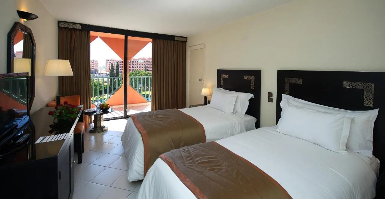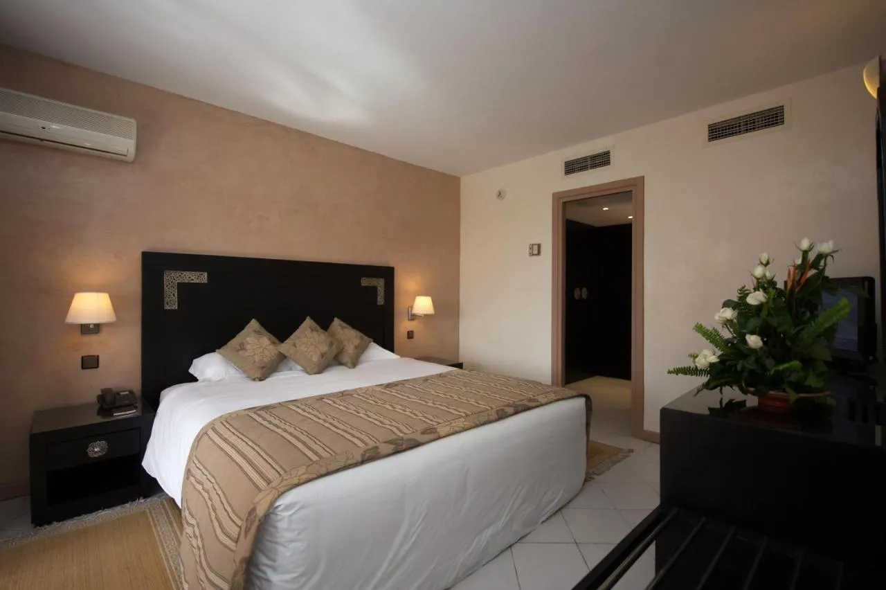 Mitten im pulsierenden Herzen von Marrakesch erhebt sich das Hotel Atlas Asni, eine 4-Sterne-Unterkunft, die ihren Gästen eine Oase der Ruhe bietet. Eingebettet in einen üppigen Garten mit Palmen bietet dieses Hotel eine Einladung zur Entspannung, nur 3 km entfernt vom berühmten Platz Jamaâ El Fna, dem symbolträchtigen Ort marokkanischer Lebendigkeit.