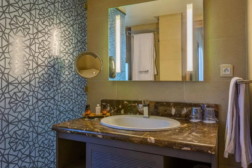 Der Traum eines jeden Touristen ist es, sich in einer luxuriösen Umgebung in der Nähe schöner Sehenswürdigkeiten zu entspannen. Bei einem Aufenthalt in Marokko bietet das Barcelo Palmeraie seinen Gästen eine Fünf-Sterne-Anlage, in der sie unterkommen und die rote Stadt erkunden können. Das Barcelo Palmeraie ist ein schickes, majestätisches Resort, dessen Infrastruktur von den lokalen Bräuchen und der Kultur inspiriert ist. Es befindet sich im Herzen des berühmten Palmenhains von Marrakesch. Genauer gesagt ist es nur fünf Minuten vom Golfplatz und elf Kilometer vom Flughafen Marrakesch-Menara entfernt. Diese gehobene Unterkunft zählt zu den besten Hotels mit Pool in Marrakesch. Es verfügt über 252 Zimmer, darunter 16 Suiten. Sie bieten jeglichen Luxus und Komfort, der für eine Erholungsreise in einem tropischen Klima geeignet ist. Jedes Zimmer verfügt über ein eigenes Bad, einen Balkon, eine Minibar und einen Flachbild-Satellitenfernseher. Eine Wi-Fi-Verbindung ist kostenlos verfügbar. Das Hotel verfügt über ein Dutzend Tagungsräume. Dies macht es zum idealen Ort, um kleine oder große Konferenzen abzuhalten. Auch festliche Veranstaltungen im Freien können hier erfolgreich organisiert werden. Gönnen Sie Ihrer Familie Tage am Pool unter dem Segen eines azurblauen Himmels. Das Hotel bietet seinen Gästen eine breite Palette an gastronomischen Dienstleistungen. In einer Umgebung, die nach dem geselligen, typisch marokkanischen Stil eingerichtet ist, genießen Sie ein exotisches kulinarisches Angebot. Ein Außen Pool und ein Spa-Bereich sollen die Entspannung der Gäste optimieren.
