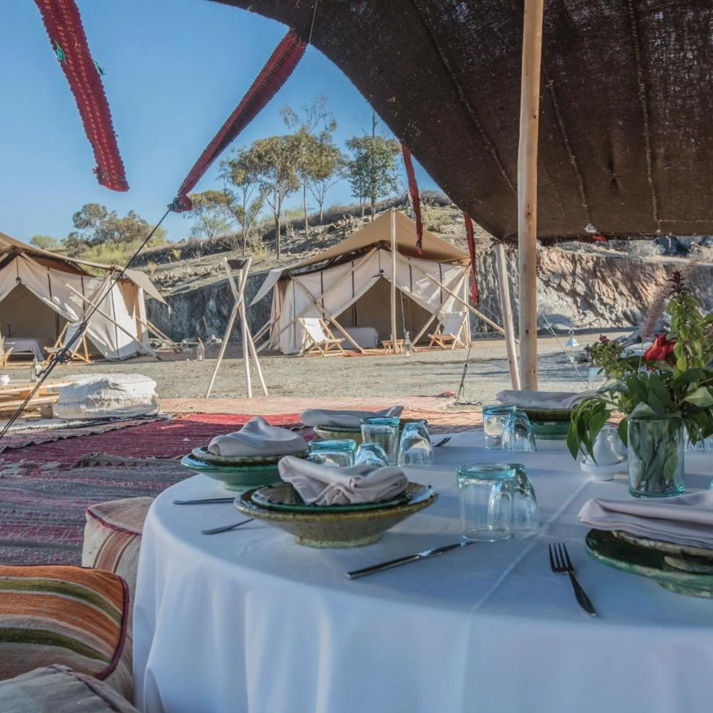 Das Terre des Étoiles ist ein privates Zeltbiwak inmitten der Wüste in der Gemeinde Agafay und bietet eine qualitativ hochwertige Unterkunft. Das Drei-Sterne-Hotel verfügt über mehr als ein Dutzend klimatisierte und gut ausgestattete Zimmer und bietet einen prestigeträchtigen und maßgeschneiderten Service. Mit einem dynamischen und aufmerksamen Personal gehört das Hotel zu den besten in Marrakesch. Laut der Meinung eines Reisenden liegt die Besonderheit des Aufenthaltsangebots in der Qualität jeder einzelnen Dienstleistung. Die Zimmer sind sauber, schlicht und schön eingerichtet. Außerdem sind die Gerichte köstlich und delikat verfeinert. Die Wüstenwanderungen sorgten während des gesamten Aufenthalts für eine einzigartige Note. Terre des Étoiles bietet seinen Gästen einen Ausflug zu Pferd an, um den Charme der Agafay-Wüste zu entdecken. Bei diesem Ausritt können Sie die kargen Pfade der Wüste beobachten und genießen. Die Unterkunft verfügt über einen eigenen Stall sowie einen erfahrenen Reitlehrer. Im Stall befinden sich Pferd e verschiedener Rassen. Fortgeschrittene Reiter können reiten und die Tipps des Reitführers nutzen, um ihre Fahrtechnik zu verfeinern.