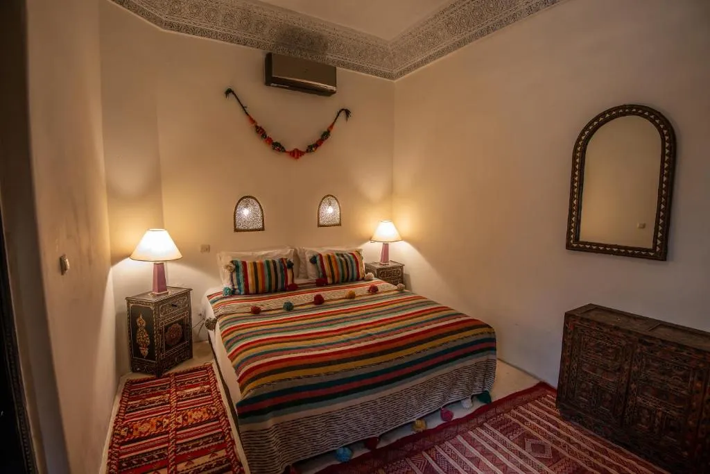 Die Zimmer des Riad Spa Sindibad, ausgestattet mit einer unverzichtbaren Klimaanlage unter der Sonne von Marrakesch, versprechen ruhige und erholsame Nächte. Jede Unterkunft ist mit einem