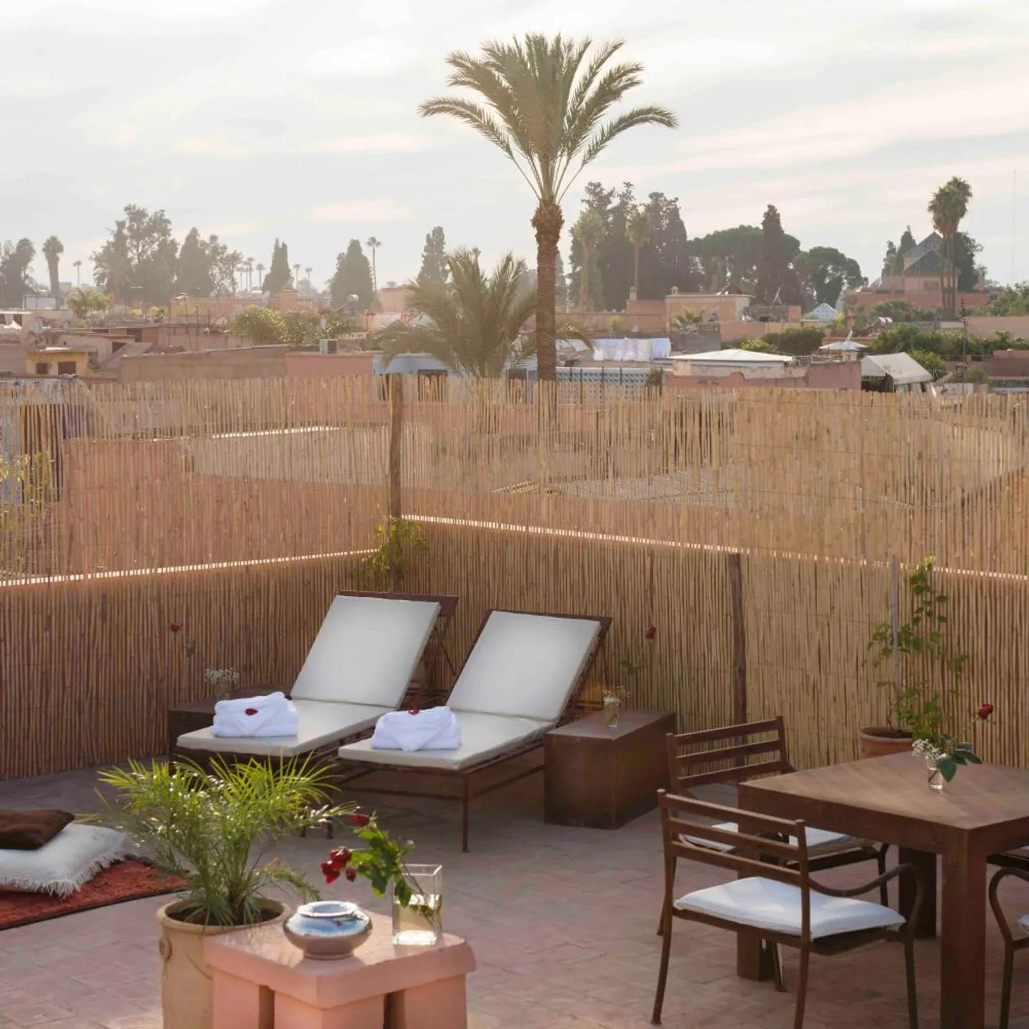 Jedes Zimmer im Room in BB - Bliss Riad Marrakech ist eine Oase des Friedens und bietet atemberaubende Aussichten auf die umliegenden Berge. Gäste haben das Privileg, sich auf einem privaten Balkon zu entspannen oder die Stadtsicht von ihrem Patio aus zu genießen. Die traditionelle Architektur des Riads, kombiniert mit diesen Panoramen, garantiert ein unvergessliches Erlebnis.