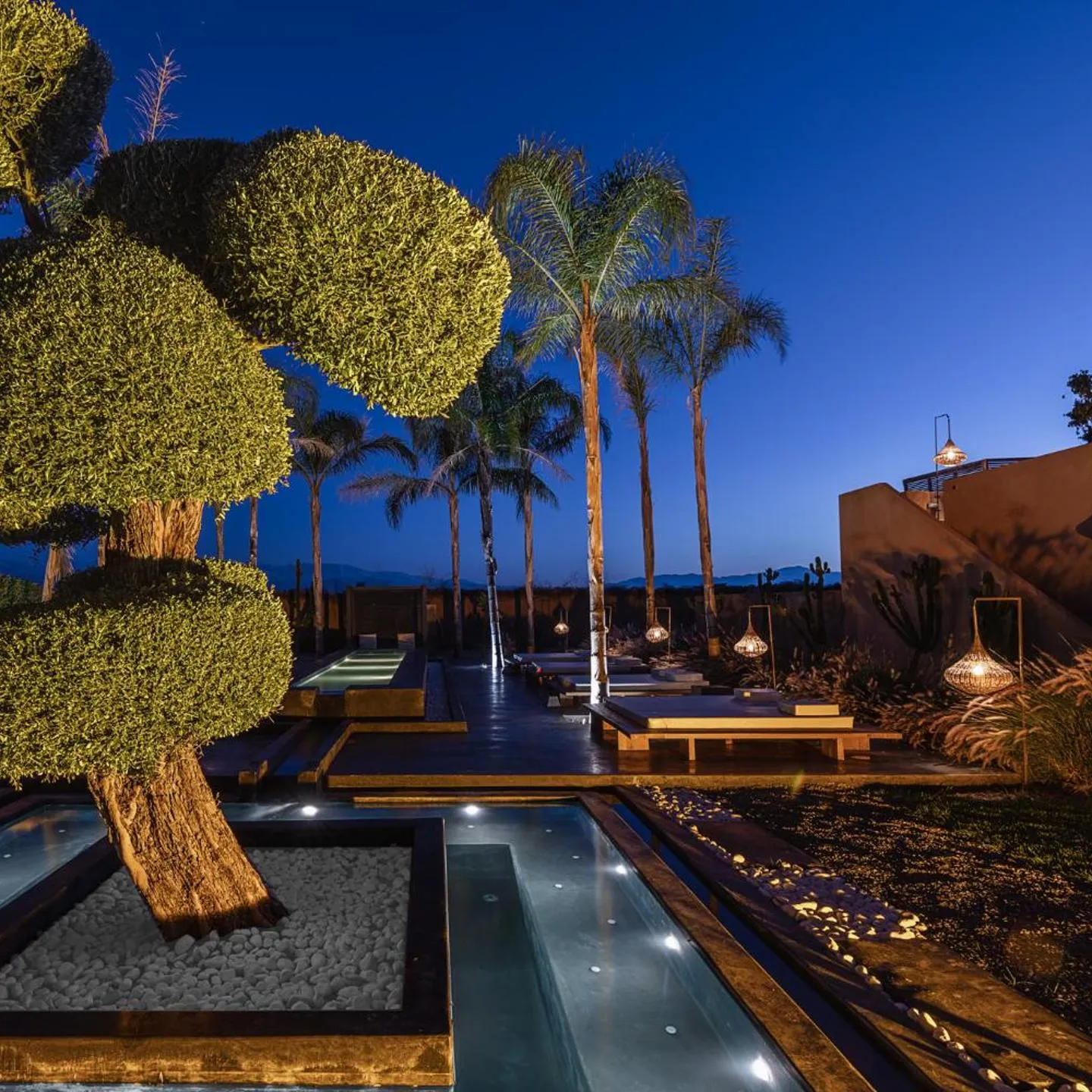 Les Jardins de Marrakech es un hotel de lujo situado en la "ciudad roja", a 18 km del Palacio de la Bahía. Es un marco ideal para una estancia en Marrakech o para una boda. Les Jardins de Marrakech dispone de 20 habitaciones, incluidas 6 suites. Con su arquitectura marroquí, el hotel se divide en 4 edificios principales. La majestuosidad de la artesanía marroquí está muy presente. Además, está perfectamente resaltada con muebles de alta calidad y una decoración digna de un escenario encantado. Esto queda bien ilustrado por las paredes y los techos cubiertos de tadelakt, madera tallada, zelliges, etc. Les Jardins de Marrakech ofrece a sus huéspedes la posibilidad de convertirlo en un hotel para bodas. A esta unión en su entorno verde, el hotel le dedica una importancia capital. Puedes invitar a tu familia y amigos. Experimentarán recuerdos únicos y encantadores con un servicio digno de su evento. Les Jardins de Marrakech prepara servicios especiales para su boda.