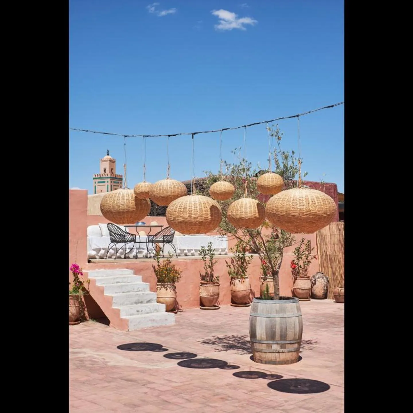 El riad no es solo un lugar de descanso, sino también un punto de partida ideal para explorar Marrakech. A unos 1,300 pies del Souk de la Medina, los huéspedes pueden aventurarse en el bullicio de los mercados locales. El Museo Boucharouite y la famosa plaza Djemaa El Fna también están cerca, ofreciendo una inmersión total en la cultura marroquí. Otros sitios de interés incluyen la Mezquita Koutoubia, el Palacio de la Bahia y los Jardines Majorelle.