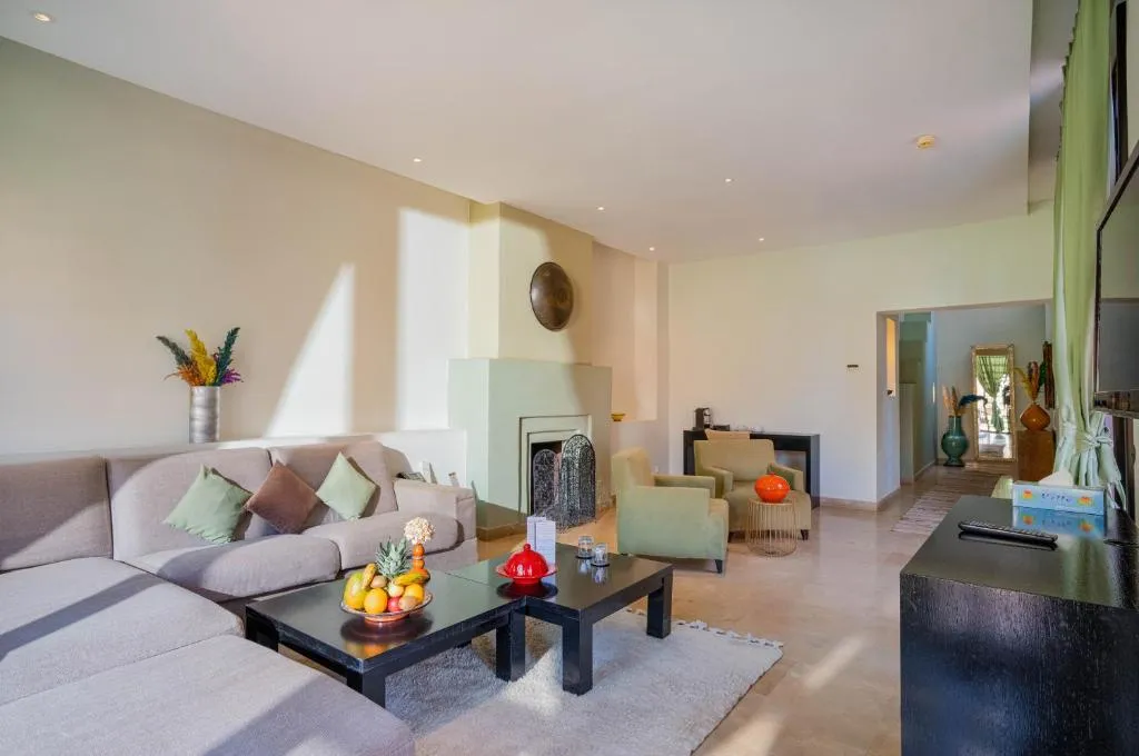 Al Maaden Villa Hotel & Spa, les villas conçues à l'image des demeures de médina constituent un refuge de tranquillité et d'élégance. Ces espaces privés sont équipés de toutes les commodités nécessaires pour garantir confort et intimité. Les résidents peuvent se prélasser dans les vastes salons dotés de