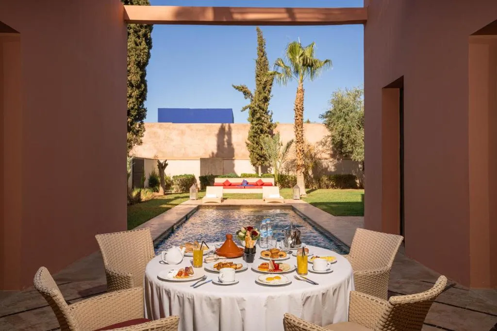 Al Maaden Villa Hotel & Spa se dresse comme une perle précieuse au cœur de Marrakech, offrant une alliance parfaite entre modernité et traditions. Niché dans un cadre verdoyant au milieu d'un magnifique parcours de golf, cet établissement est une invitation au luxe et au bien-être, promettant un séjour inoubliable aux voyageurs en quête d'exclusivité et de raffinement.