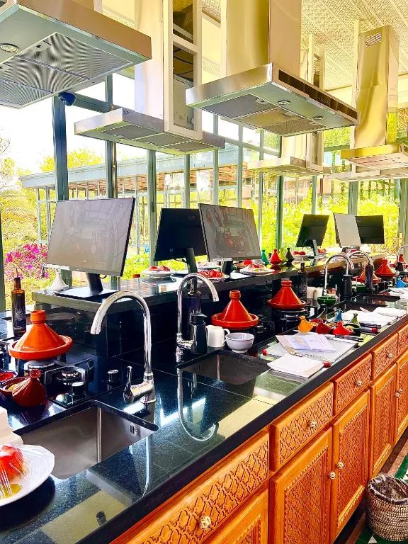 L’établissement Les Jardins de la Médina est un hôtel romantique de charme installé au centre de Marrakech dans le royaume chérifien. Il est situé à proximité des lieux emblématiques comme la place Jamaâ El Fna, le Riad et l'Aéroport de Marrakech. Il dispose de magnifiques jardins exotiques, une piscine extérieure, un spa et un espace de bien-être. L'établissement Les Jardins De La Médina dispose de chambres modernes à la fois insonorisées et climatisées. Chacune d'elle est équipée d'un magnifique balcon avec vue sur le jardin et la piscine, une salle de bain privée, une connexion wifi gratuite et une télévision satellite nouvelle génération. L'établissement Les Jardins De La Médina s'illustre aussi dans ses confections culinaires par le biais de son Bar-restaurant. Ce dernier confectionne à la fois les saveurs marocaines et méditerranéennes. Il dispense aussi des cours de cuisines au grand bonheur des amoureux de repas. Le volet loisir de cet établissement hôtelier n'est pas à négliger. En effet, on y trouve une piscine extérieure, un jardin exotique d'une beauté luxuriante et un spa avec hammam et soins de beauté.