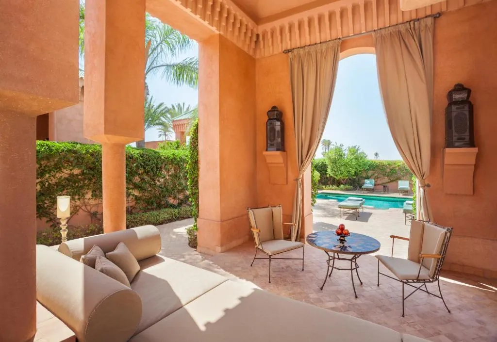 The Mandarin Oriental is the dream destination if you want to spend a vacation in Marrakech. Discover here this heavenly place. Located near Jemaa el-Fna Square and the city center, the Mandarin Oriental is one of the hotels with a heated pool that welcomes you to Marrakech for your stays. Popular with travelers who book family vacations, it has 54 private villas with heated pool s on request and a Jacuzzi. The Mandarin Oriental Marrakech has a total of 9 suites. Among these 9 suites, you will find 7 that have a rooftop pool . It also has 2 on-site restaurants and bars. In this establishment, you have everything you need to relax inside each accommodation. In fact, each unit is equipped with a kettle, coffee maker, flat-screen satellite TV and DVD player. Fitness, cooking classes, YOGA classes and massage sessions are just some of the activities offered at Mandarin Oriental Marrakech. There are many other activities that you can find on the hotel's website. Its location in Marrakech allows you to walk around and enjoy your stay outside the complex.