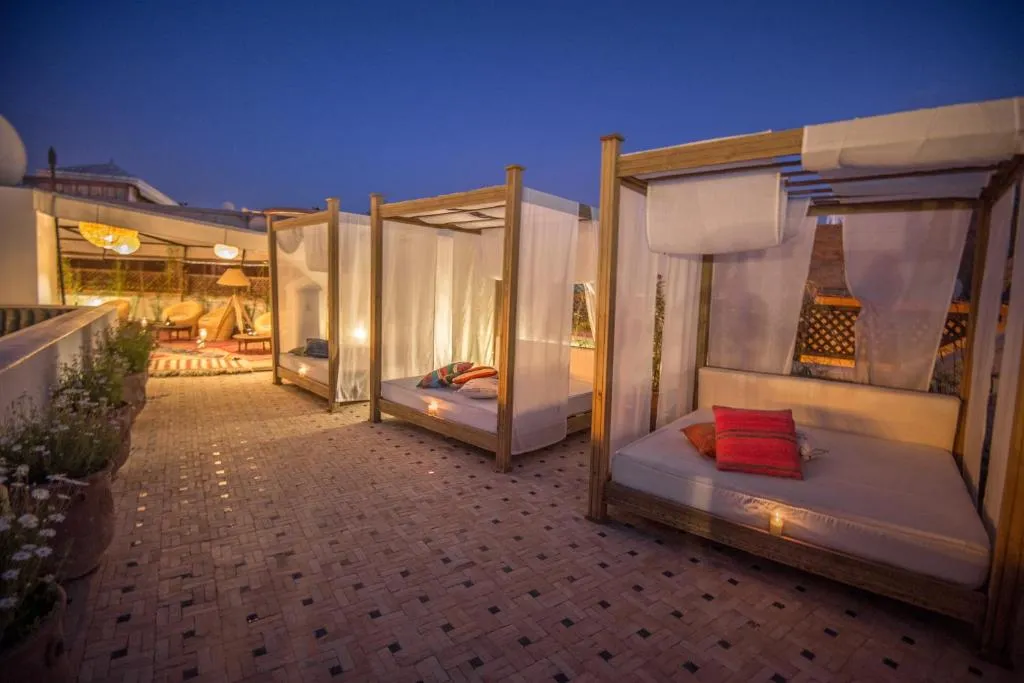 With its relaxing yet fun charm, Hotel & Spa, Riad El Walaa offers you many amenities. Here is a brief description of the hotel. The Hotel & Spa Riad El Walaa are a warm building that perfectly matches the decor of Marrakech. Enjoy a free Wi-Fi connection with a fascinating speed. It consists of 09 rooms, all air-conditioned with a built-in terrace. Once installed, you have all the necessary accessories to feel at home, such as the bathtub or the hair dryer. Cherry on the cake, you have the possibility of spending excellent moments of relaxation with a view on the swimming pool since your humble residence. Indeed, Hotel & Spa, Riad El Walaa is part of the hotels with swimming pool , because of 02 swimming pool s, one covered and one outside. In addition to the pool s, the hotel also offers a Spa and a wellness center. The hotel offers services that are both relaxing and fun. This is the case of the massages that are available at the spa or the relaxation and wellness activities such as yoga. You can also enjoy a good atmosphere in the evening at the bar and fully enjoy the gastronomic palate offered by the restaurant.