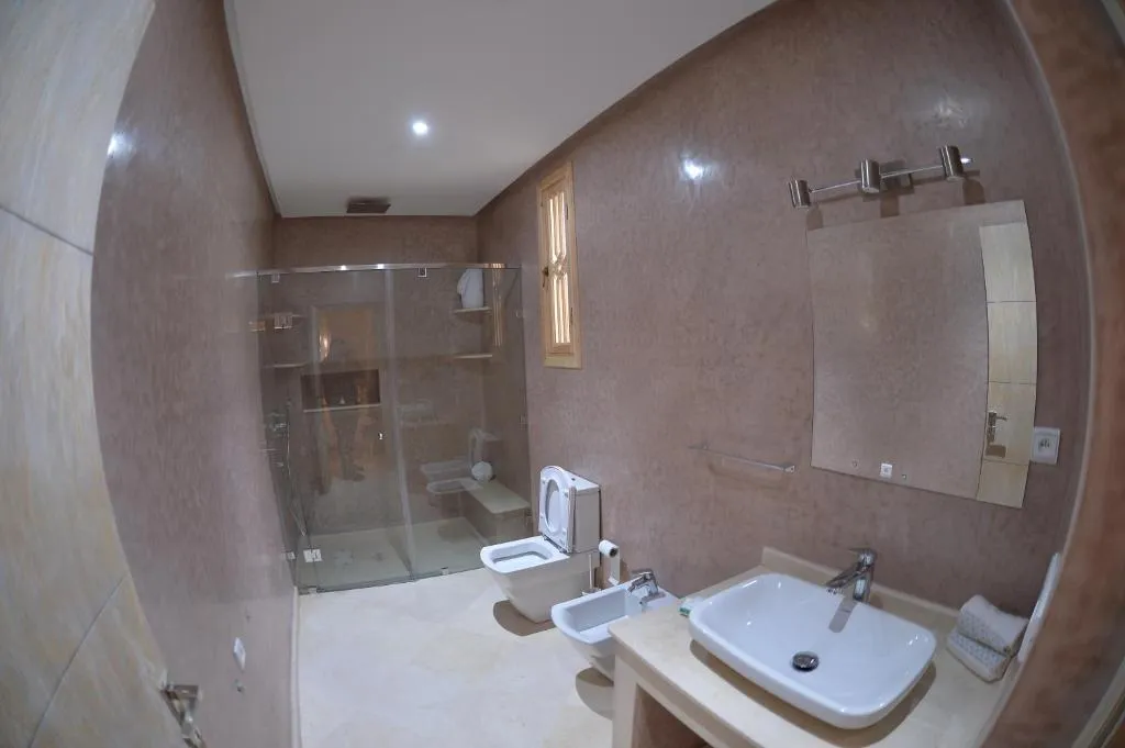 Sidi Safou Farm is located in Marrakech. This establishment offers a view of its garden with animals. The farm has a restaurant, a 24-hour reception, a bar, an outdoor swimming pool and a terrace. It is a place where you can practice yoga in peace. Some of the accommodation at Sidi Safou Farm has a flat-screen satellite TV and a fully equipped kitchen with a microwave. There is also a private bathroom with a bidet and a hairdryer. During your stay at the farm, you can also enjoy a continental or à la carte breakfast on site. Alternatively, you can lounge and relax in the shared lounge area. Sidi Safou Farm is located 11.7 km from Majorelle Garden and 9 km from Menara Garden. A shuttle service to Marrakech Menara Airport is available at an additional cost. The location of this establishment is particularly appreciated by the guests. It is the ideal place for your yoga retreat as the flats with lounge dedicated to this method of relaxation are well equipped.