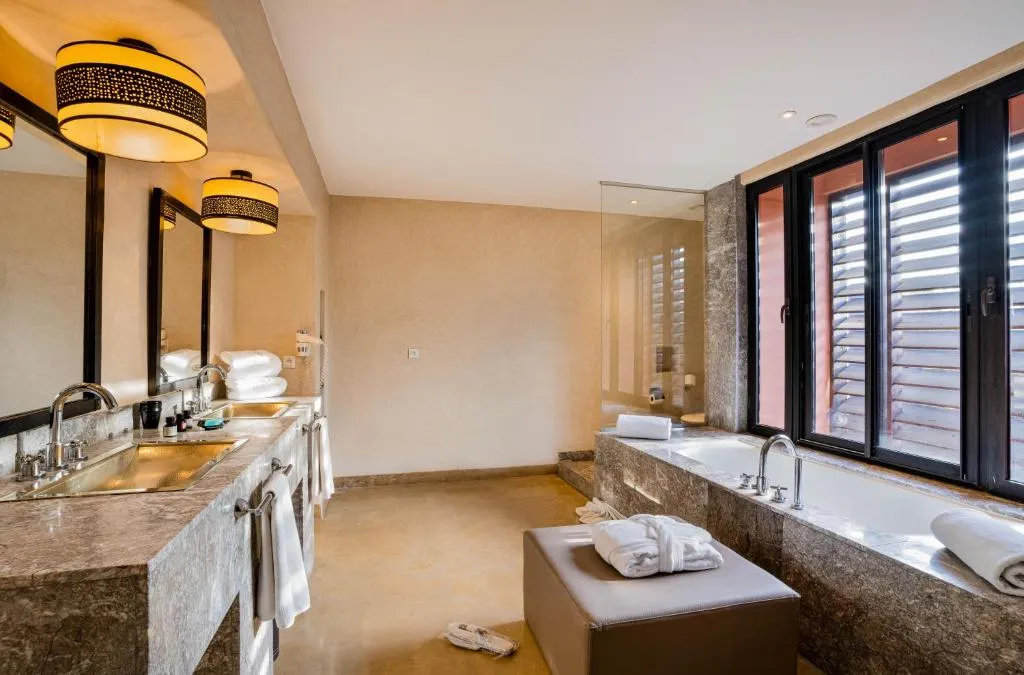 Al Maaden Villa Hotel & Spa si erge come una perla preziosa nel cuore di Marrakech, offrendo un perfetto connubio tra modernità e tradizione. Immerso in un ambiente verde in mezzo a un magnifico campo da golf, questa struttura è un invito al lusso e al benessere, promettendo un soggiorno indimenticabile per i viaggiatori in cerca di esclusività e raffinatezza.