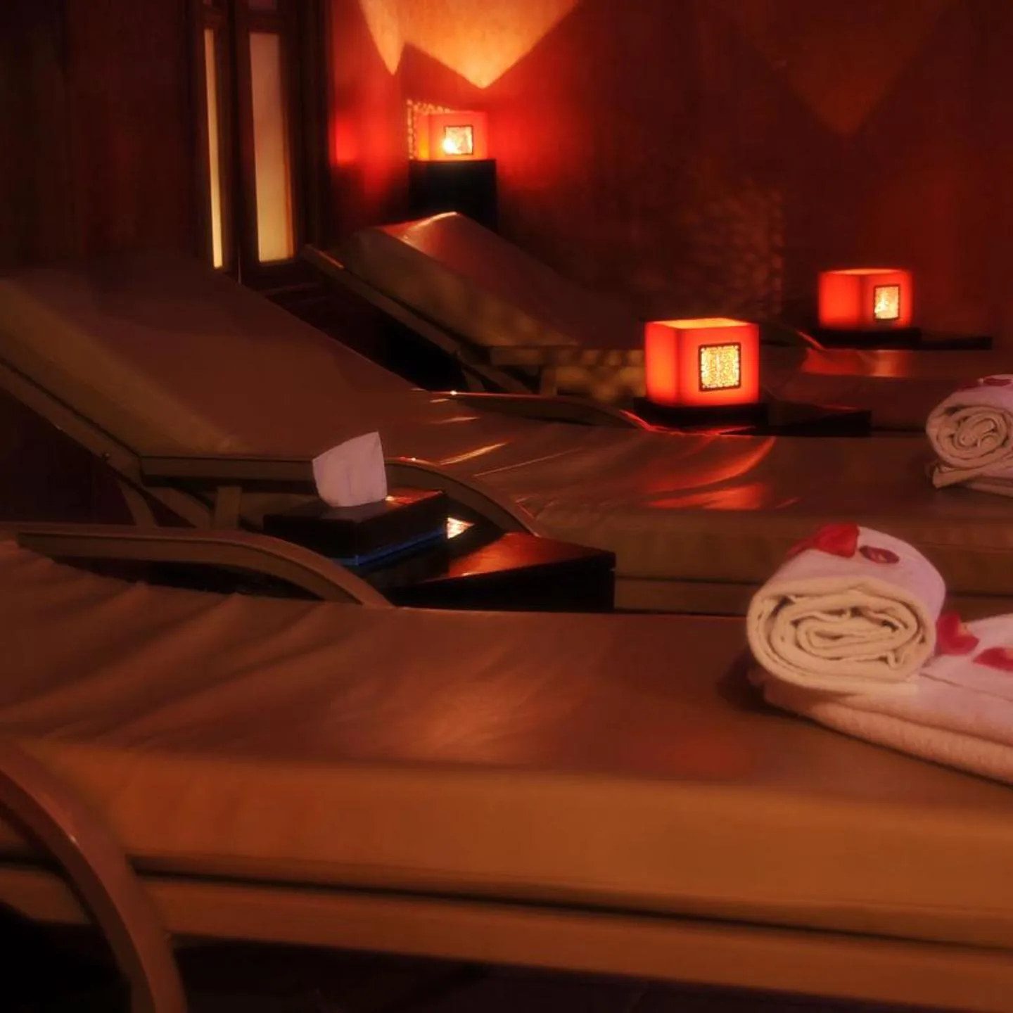 Lo spa dell'Atlas Medina è uno spazio dedicato al relax dove gli ospiti possono godere di massaggi, trattamenti per il corpo e un'atmosfera rilassante per un'esperienza rivitalizzante.