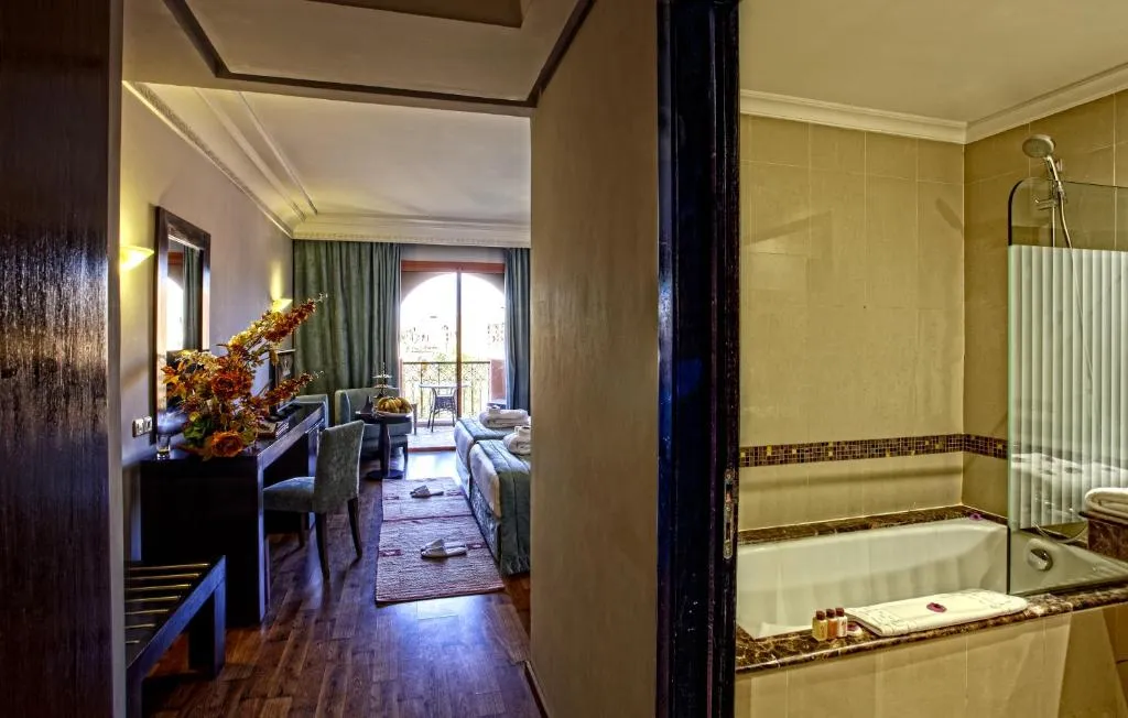 L'Hotel Du Golf Rotana Palmeraie è uno dei migliori hotel con hammam della città di Marrakech. Si trova nel complesso Palmeraie, nel nord-est della città, non lontano dall'aeroporto. Ha 315 camere spaziose. Sono climatizzati e ben attrezzati per ottimizzare il vostro comfort. Inoltre, hanno la connessione Wi-Fi gratuita e sono dotate di armadi e TV a schermo piatto. Hanno anche bagni privati e balconi. C'è anche una piscina con vasca idromassaggio, 2 ristoranti e un centro fitness. Offre anche un servizio in camera 24 ore su 24. L'Hotel Du Golf Rotana Palmeraie dispone di un centro business con un servizio privato di noleggio limousine. Offre anche diverse attività per il tempo libero. Durante il vostro soggiorno, una colazione continentale è servita ogni giorno. Per la cena, potete scegliere tra 2 ristoranti. Uno offre cucina internazionale e l'altro cucina marocchina. L'hotel offre un club per bambini gratuito e una spa con hammam . Questi ultimi sono accessibili in ogni momento e si trovano a pochi metri dall'hotel.