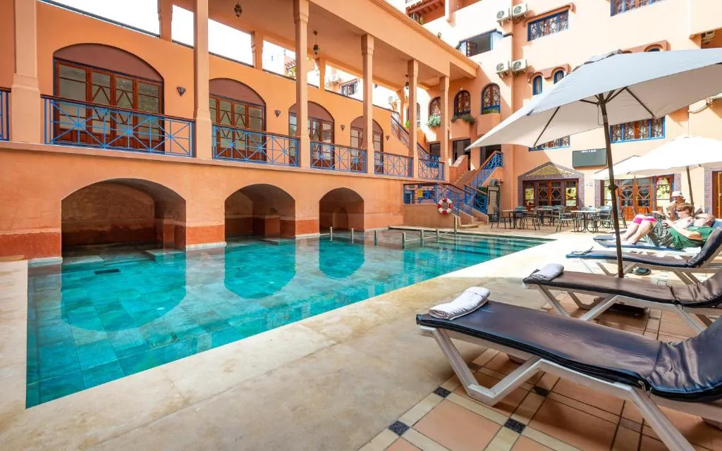 I visitatori sono accolti in camere climatizzate che offrono tutto il comfort necessario per un soggiorno piacevolissimo. Ogni camera dispone di un balcone o terrazza, permettendo agli ospiti di godere del mite clima di Marrakech. Le attrezzature delle camere includono una televisione satellitare, un telefono e un bagno privato con asciugacapelli e doccia o vasca. Per garantire un'accessibilità ottimale, tutte le camere sono raggiungibili in ascensore.