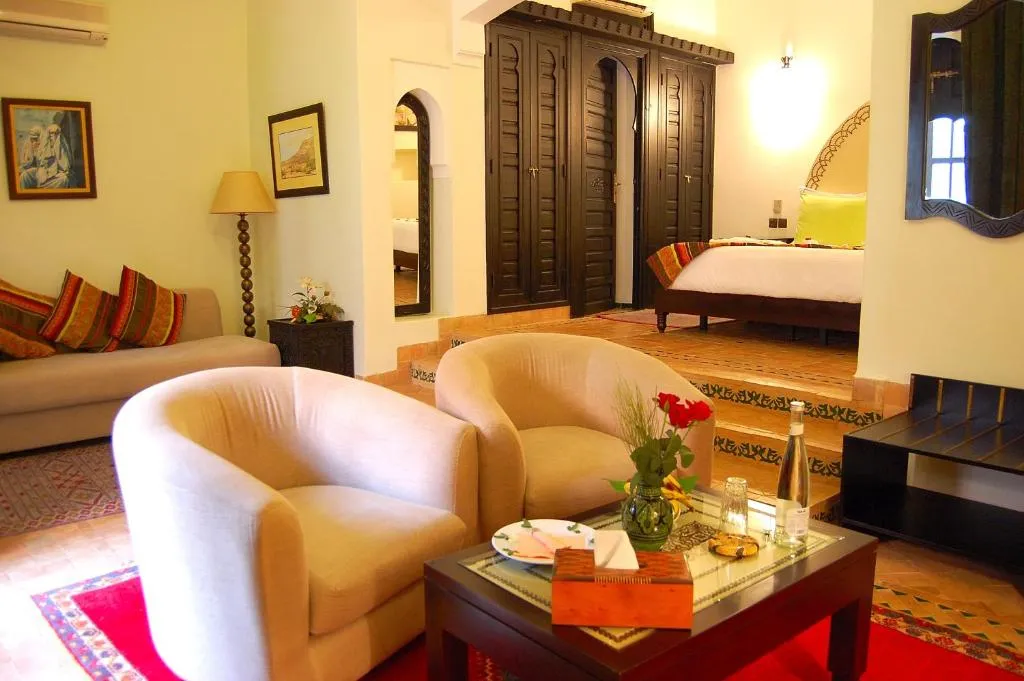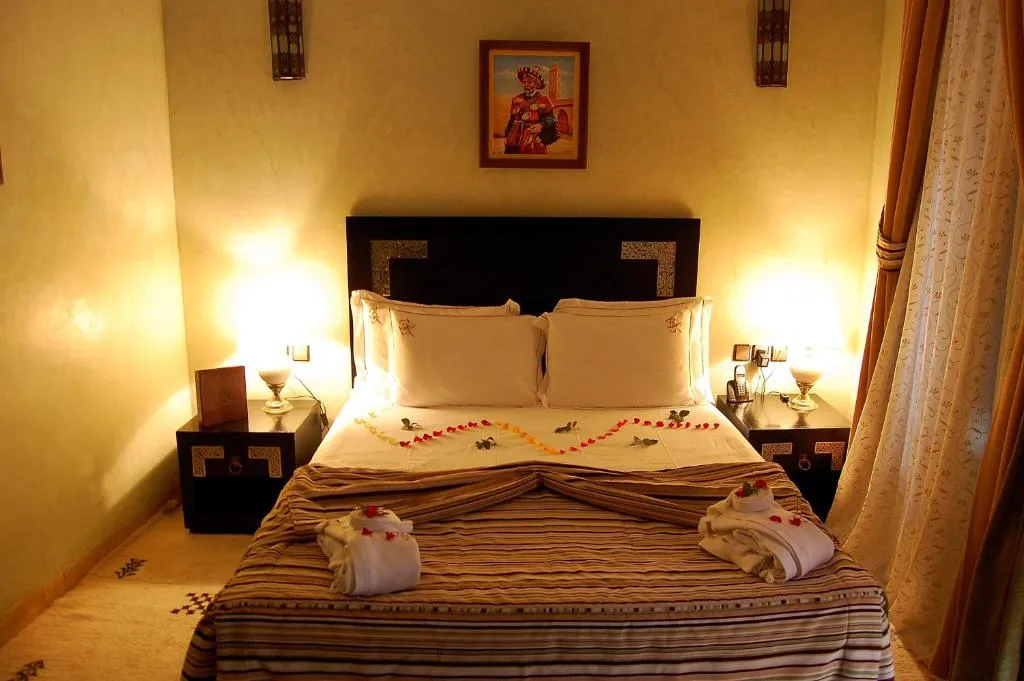 L'hotel dispone di 18 camere insonorizzate e non fumatori, distribuite tra quattro patii distinti, offrendo così privacy e serenità agli ospiti. Ogni camera è dotata di un bagno privato, aria condizionata per affrontare il caldo di Marrakech e una televisione satellitare a schermo grande per i vostri momenti di relax.